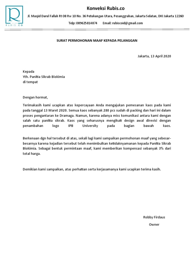 Surat Permohonan Maaf Kepada Pelanggan Pdf